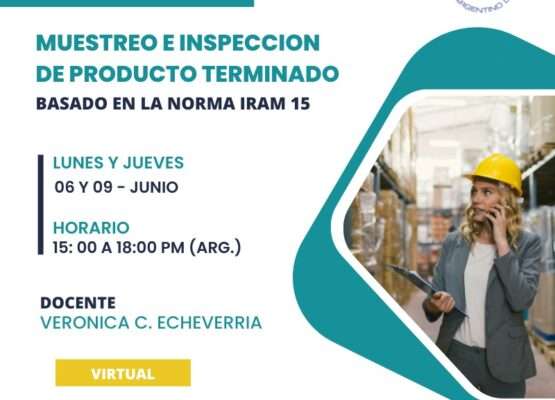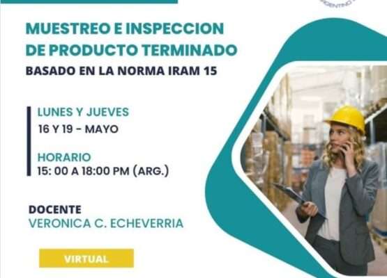 Descuentos especiales para socios UIDE 👉16 y 19 de mayo 2022, dos encuentros de 15 a 18 hs. (duración total 6 hs).👉Modalidad online. Temario:✨Muestreo e Inspección de Producto Terminado según la Norma IRAM 15.✨Conceptos básicos: Inspección, Muestreo, Lote, Niveles de AQL.✨Procedimiento para la evaluación de calidad: ejemplos de productos farmacéuticos.✨Tablas de Plan de Muestreo SIMPLE […]